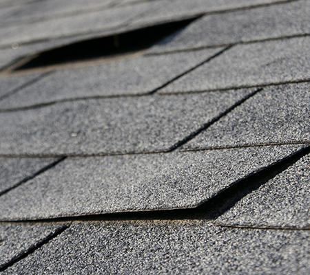 Quant au gondolage, vous le reconnaîtrez aux bardeaux bombés avec des coins inférieurs repliés vers le bas. Ce type d'usure provient souvent d'une bande adhésive qui adhère mal ou lors d'un défaut de fabrication. Il pourrait aussi être causé par le gonflement et la rétraction des planches de bois de la structure.